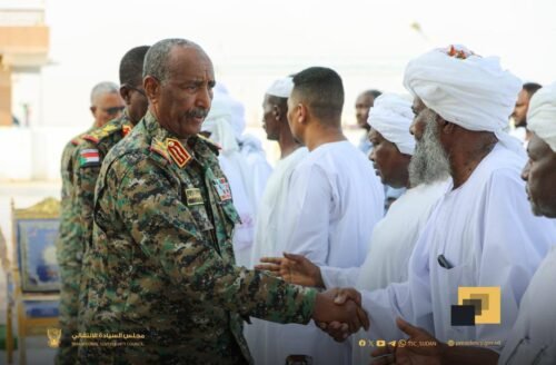 رئيس مجلس السيادة القائد العام للقوات المسلحة فريق أول ركن عبد الفتاح البرهان يرافقه عضو المجلس فريق اول شمس الدين كباشي، يقدمان واجب العزاء في فقيد البلاد ناظر عموم قبائل دار حمر الأمير عبد القادر منعم منصور