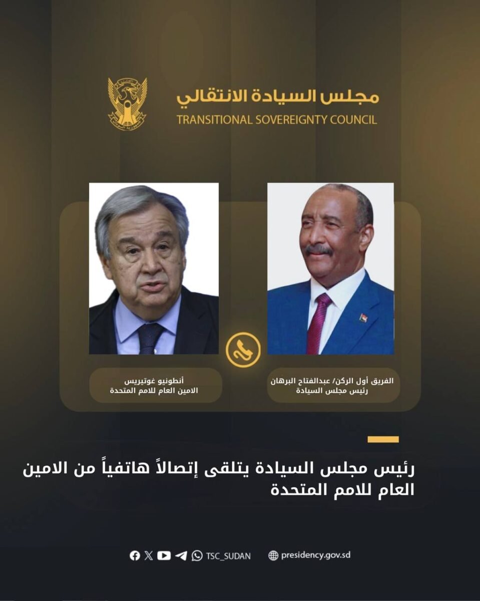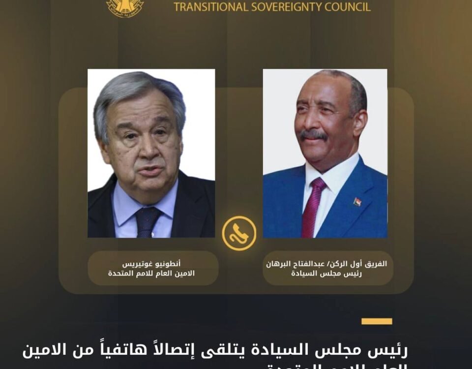 بورتسودان ٢٧-٦-٢٠٢٥م تلقى رئيس مجلس السيادة الانتقالي الفريق أول الركن عبدالفتاح البرهان إتصالاً هاتفياً من الأمين العام للأمم المتحدة، أنطونيو غوتيريش ، عبر فيه عن ترحيبه […]